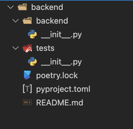 % poetry new backend여기서는 프로젝트 의존성 관리를 위해서 poetry를 사용하였으며 이에 대한 설명은 아래 포스트에서 작성하였다.