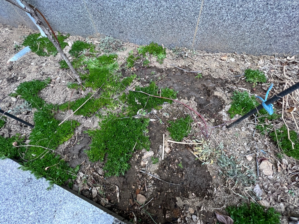 줄기만 길지 뿌리는 깊지 않아서 옮겨심기가 어렵다. 좀 더 키워서 옮겼어야 했나 싶다.