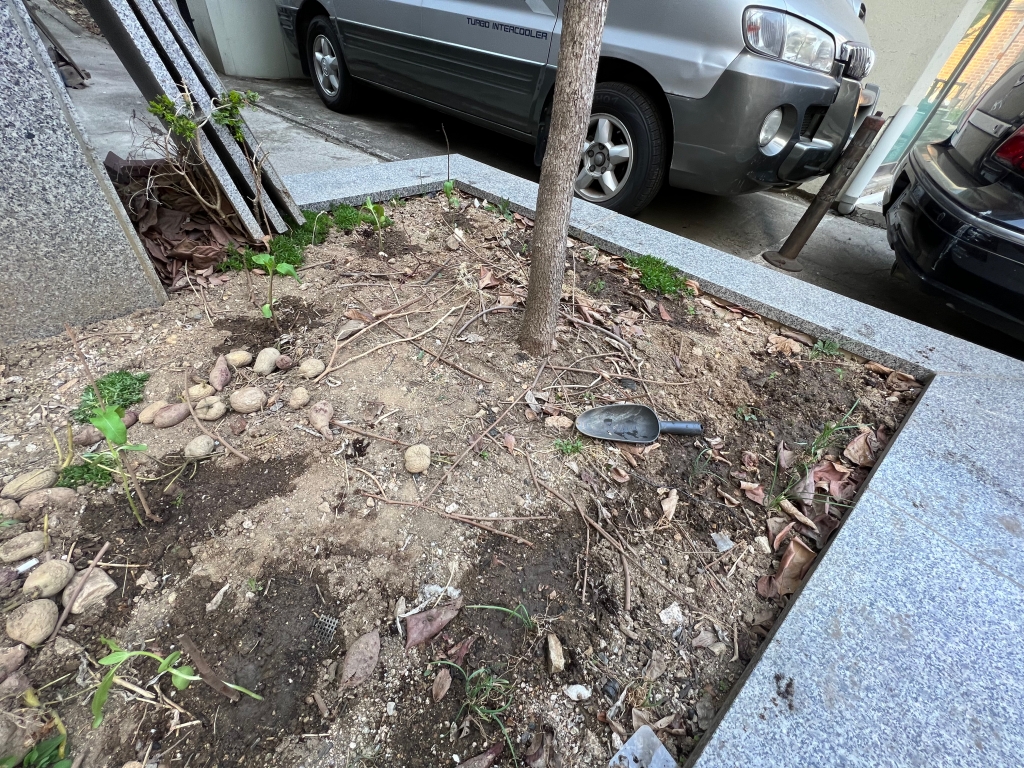 잘 자라는 애들은 그냥 뽑아서 버리기도 아깝고 화분을 더 들이기도 뭐하고 해서 일단 부모님 댁 화단에 옮겨 심기로 했다.