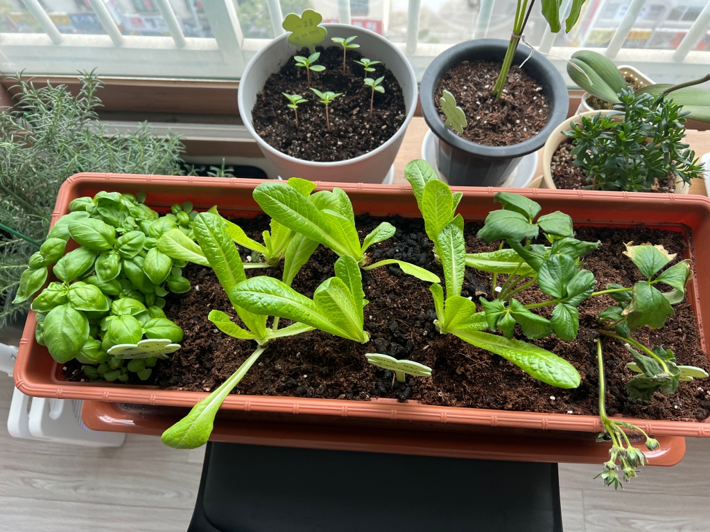 바질도 꽤 싱싱하게 자라주고 있다. 물론 저렇게 다닥다닥 붙여서 심었더니 아래에 잎이 작은 친구들은 키 큰 아이들에게 가려 빛을 못 받고 있고, 잎이 너무 풍성하여서 아래쪽으로는 곰팡이들이 살자 보이기 시작했다.