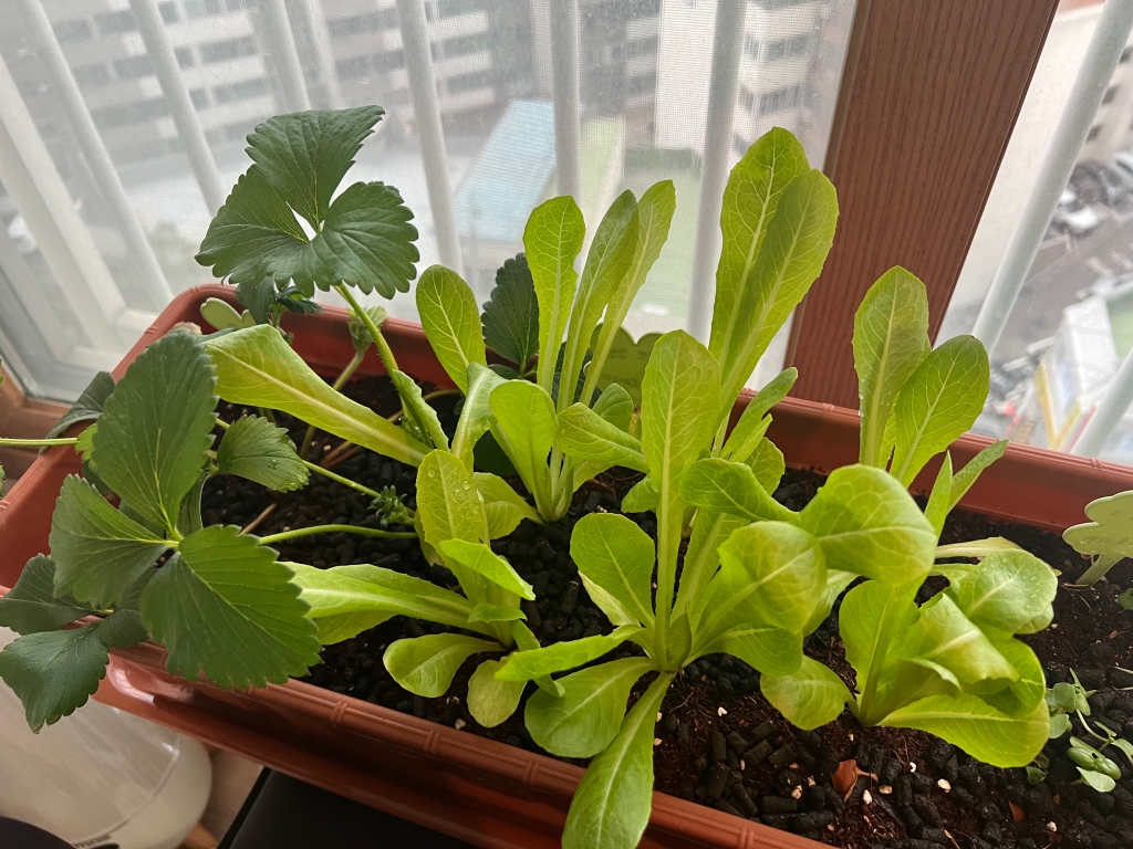 반면에 딸기는 완전히 자리를 잡고 쭉쭉 잘 자라고 있다. 과연 딸기에서는 딸기가 열려서 맛을 볼 수 있을까 신기하다.