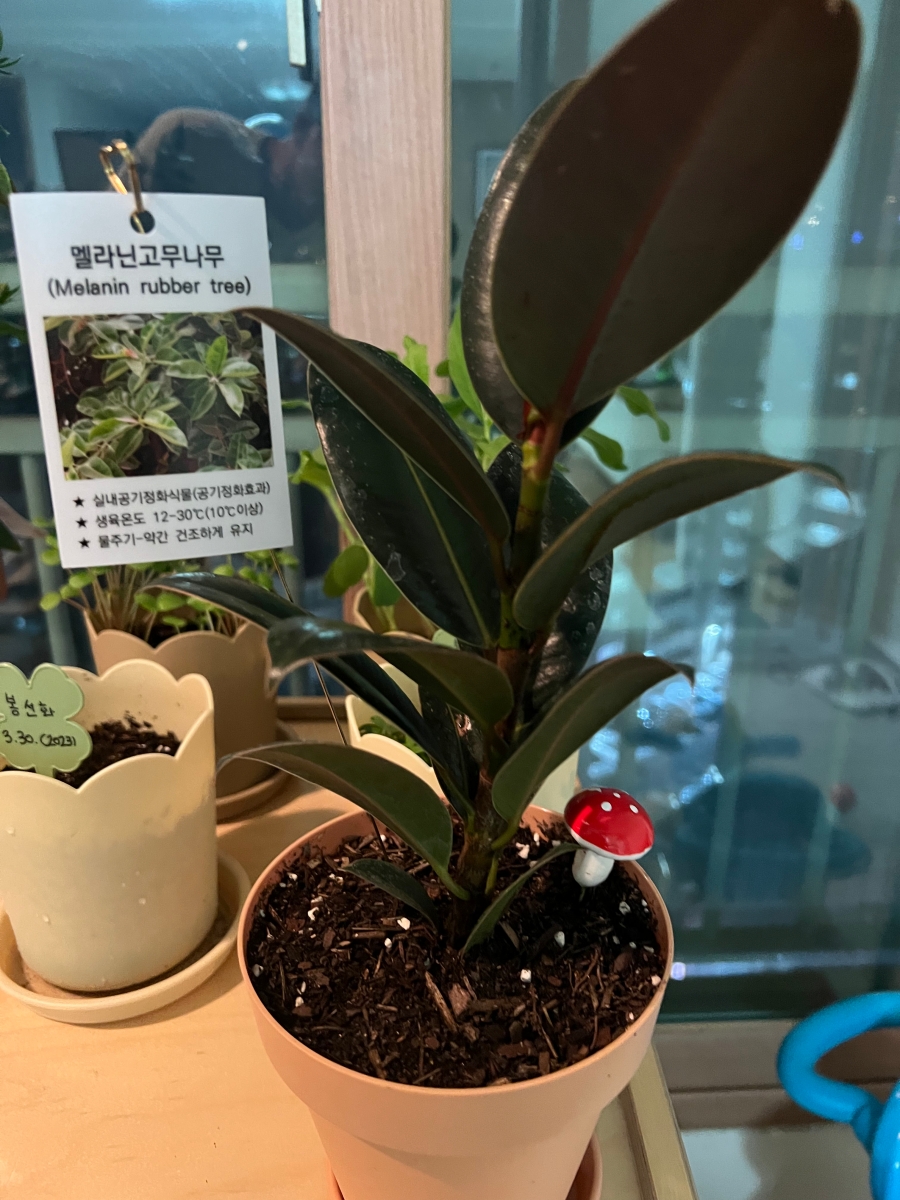 사실 저 아래에 고무나무가 있는데 다른 나무보다 비교적 잘 크는 고무나무가 키우기는 수월할듯 해서 이걸로 가져왔다.