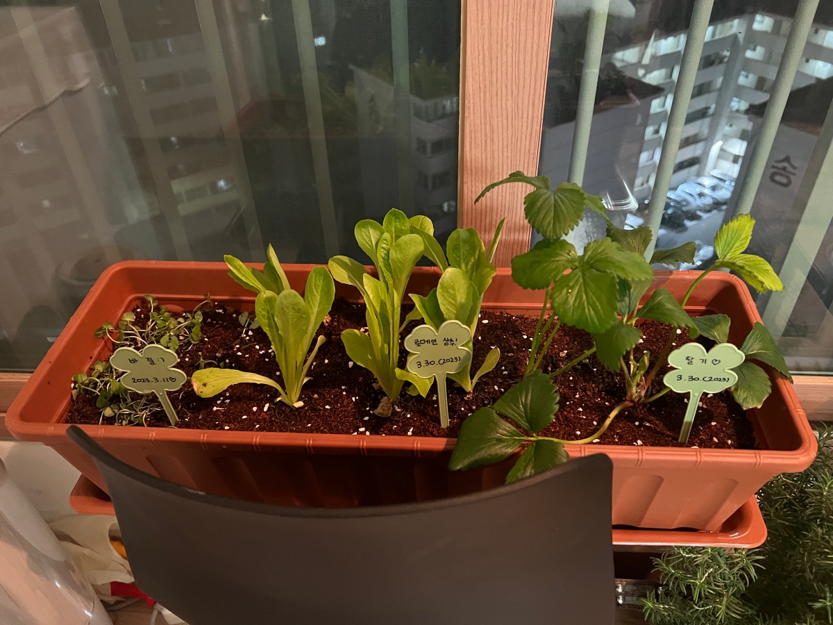 다 심고 나니 딸기와 로메인은 제법 모습이 나게 잘 심어진거 같은데 바질은 과연 얘들이 살 수 있을까 하는 모습이 되었다.