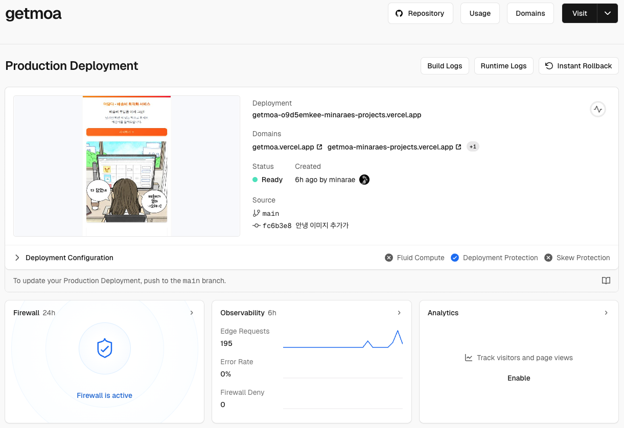 - Vercel 대시보드에 로그인하여 프로젝트 상태를 확인할 수도 있습니다.