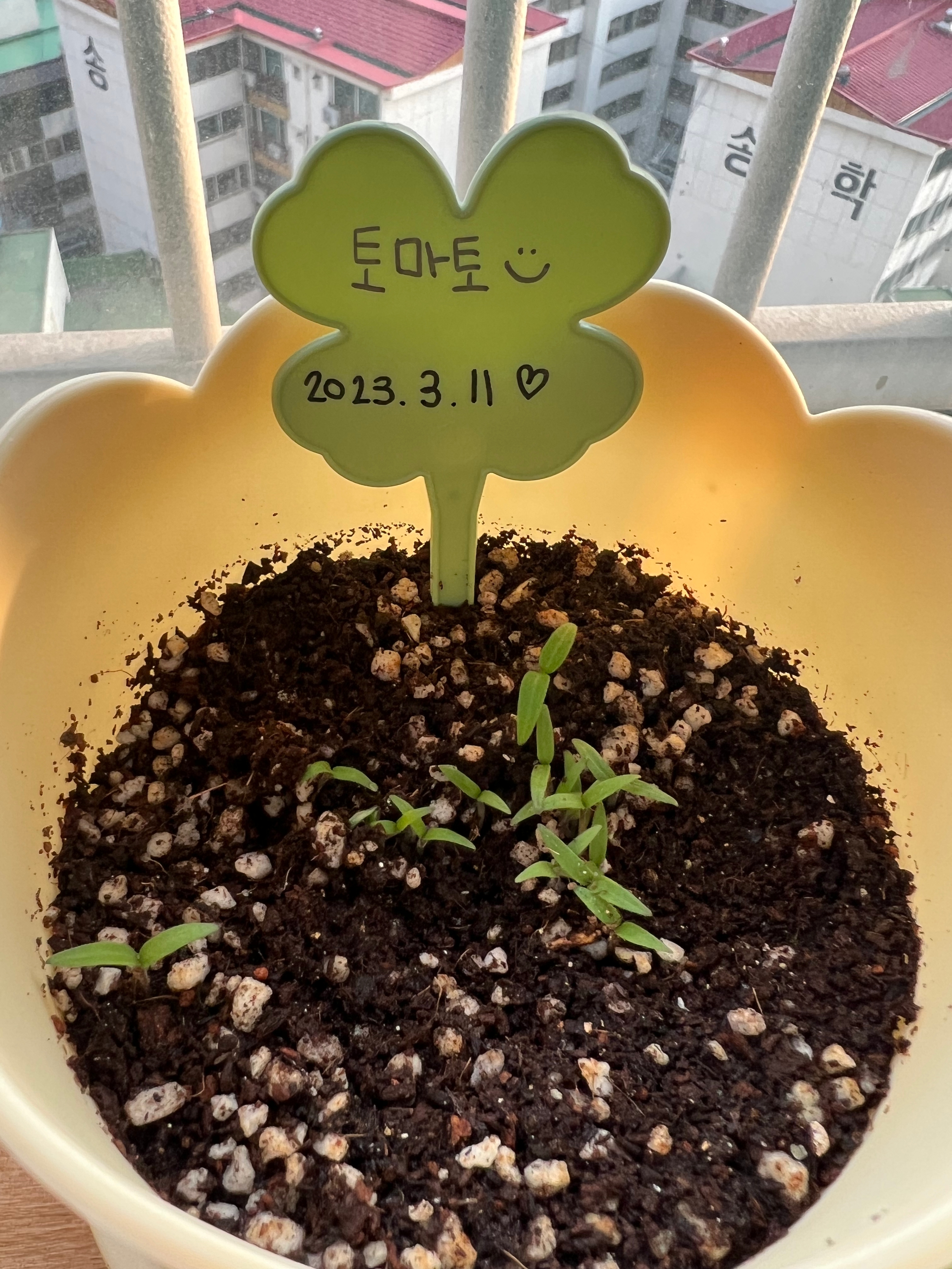 큰 딸 소민이가 가장 기대하는 화분인데 이유는 토마토가 열리면 따먹으려는 것이다. 토마토를 엄청 좋아하니 토마토 화분을 길러서 잘 키워서 따먹으면 이것도 하나의 학습이 되지 않을까 싶다.