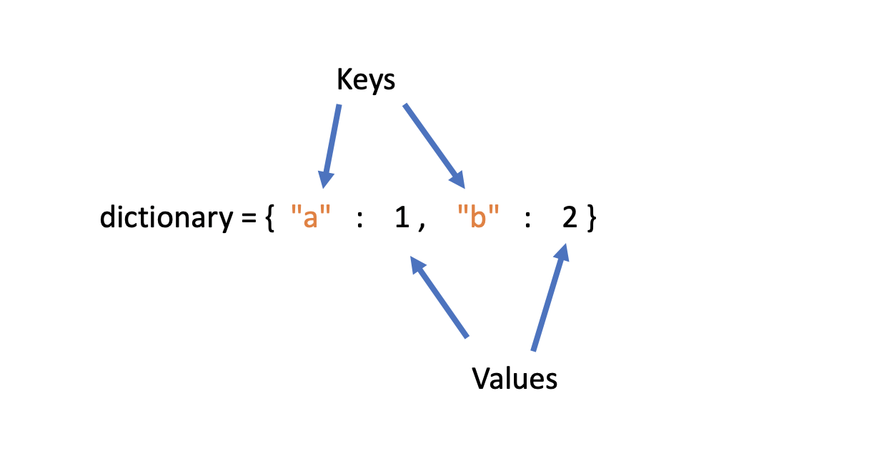- Dictionary는 key-value 쌍으로 이루어져 있습니다. 즉, 값을 저장할 때 key를 지정하여 저장하며, 이 key를 이용하여 값을 참조합니다.